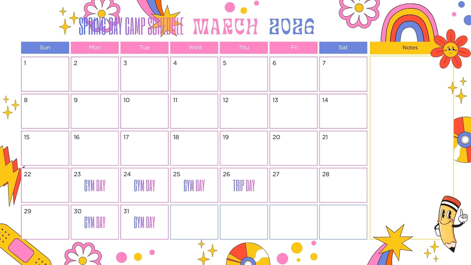 Parks and Recreation Schedule for MARCH.